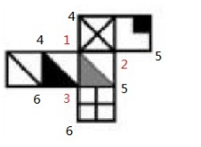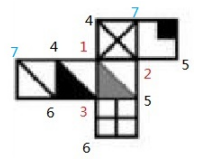 第三步:補齊剩余點:我們看到4,現(xiàn)在一共有兩個4,這兩個4一共連接了三個面,所以4也是一個確定頂點,可以使用頂點法。在平面展開圖外圍,與確定頂點4距離為“1”的點是同一個點,我們剛剛根據(jù)1找到的4,不能再標1,這時發(fā)現(xiàn)兩個4兩邊的點都是空的,沒有命名,故命名下一個數(shù)字7.