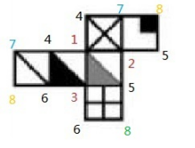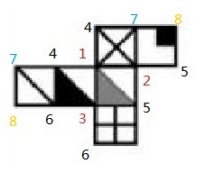 兩個8只連了兩個面,在最后的右下角標上第三個8,此時每個數(shù)字都連接了三個面,標齊正確。