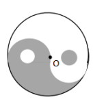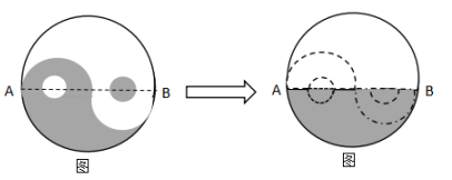 【例題2】如圖,太極八卦圖外部是以O點為圓心,6cm為半徑的圓,其內(nèi)部白色小圓與黑色小圓的圓心與大圓圓心在同一條直線上,且小圓直徑為2cm,求圖中陰影部分的面積?
