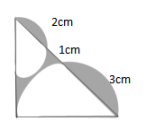 【例題3】如圖,等腰直角三角形,斜邊為6cm,在兩直角邊上取一定長度為直徑作兩個半圓,且兩半圓相切,分別與等腰三角形的斜邊截得長度為2cm、3cm的弦,求陰影部分的面積?