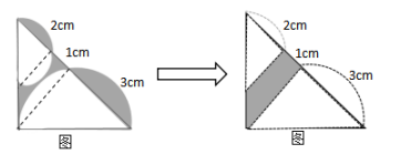 一個不規(guī)則的部分,分別連接兩半圓與等腰三角形兩邊的交點(如圖),根據(jù)直徑對應的圓周角是90°,可得兩虛線垂直于斜邊且相互平行,又因為大三角形是等腰三角形,則兩個小三角形也是等腰三角形,所以外部兩個弧形陰影的面積與內(nèi)部兩個弧形的面積相等,故將外部大小兩弧形陰影分別向左、右旋轉(zhuǎn)90°(如圖8),陰影部分面積就轉(zhuǎn)化成了梯形的面積,所以梯形面積為