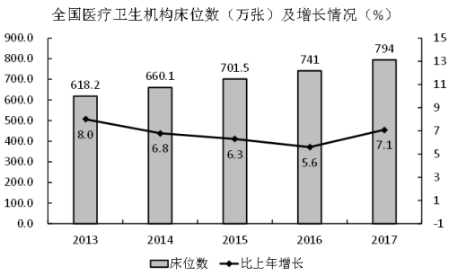 (2019山東)雖然2014-2016年間全國醫(yī)療衛(wèi)生機(jī)構(gòu)床位數(shù)增長速度持續(xù)下滑,但2016年床位數(shù)仍然比2014年增加了:
