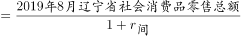 =2.65%+5.73%+2.65%*5.73%≈2.65%+5.73%=8.38%。定位表格材料可知2019年8月,遼寧省社會消費(fèi)品零售總額為1280.7億元,根據(jù)基期計(jì)算公式可計(jì)算得2017年8月遼寧省社會消費(fèi)品零售總額