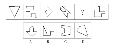 【解析】A。每個(gè)圖形都有且僅有一條對稱軸,對稱軸的方向依次順時(shí)針旋轉(zhuǎn)45度,應(yīng)選擇一個(gè)有豎直對稱軸的圖形,A項(xiàng)符合。