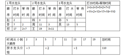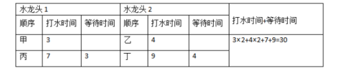 【解析】要使4人打水的時間與等待的時間之和最短,只需讓等待時間最短即可,因為打水的時間是固定的,所以在有2個水龍頭的情況下,4個人的打水情況如下長: