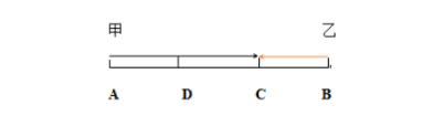 每當甲走3份路程,乙要走1份路程,則有,當甲返回途中到D時,乙也到D,此時兩人方向相同,甲從背后追上了乙,在還沒來得及發(fā)生第二次迎面相遇時就已經(jīng)追上了。