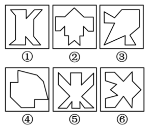例如:把下面的六個圖形分為兩類,使每一組圖形都有各自的共同特征或規(guī)律。分類正確的一項是: