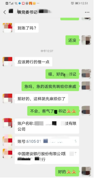 隨后立即提出要求幫忙轉(zhuǎn)賬匯款的要求,比如親戚借錢、上級(jí)領(lǐng)導(dǎo)要求轉(zhuǎn)賬、朋友急用等等。抓住一般人對(duì)領(lǐng)導(dǎo)不敢質(zhì)疑的心理,有時(shí)甚至使用“盡快”“馬上”“立即”這些催促性的詞語,既營(yíng)造了緊張氣氛,又利用時(shí)間差降低受害人核實(shí)轉(zhuǎn)賬需求真假的可能性。