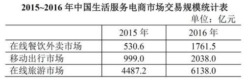 【例2】以下哪項最能準(zhǔn)確描述2016年生活服務(wù)電商市場中,三個不同細分市場交易規(guī)模同比增量的比例關(guān)系?