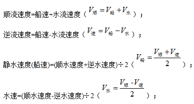 流水行船問題,是指船在河里航行時(shí),除了船本身的速度外,還受到水流給船的推力或者阻力,因此,流水行船問題中基本公式為: