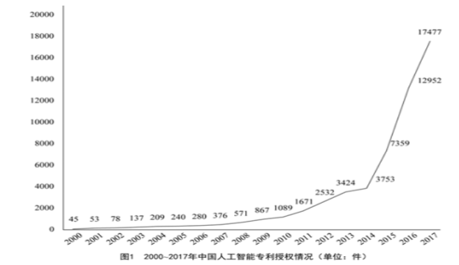 C.中國科學(xué)院僅2017年的人工智能專利授權(quán)量就接近2000至2004年5年全國授權(quán)量的總和