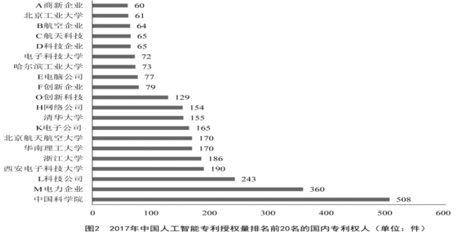 D.2017年排名前20名的國內(nèi)專利權(quán)人,其人工智能專利授權(quán)量占當(dāng)年人工智能專利授權(quán)總量的比例超過了40%