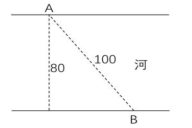 35、如右圖所示,一條河流的兩岸分別有A、B兩處景點(diǎn),河面寬80米,A與B的直線距離是100米?,F(xiàn)需鋪設(shè)一條觀光棧道連接A與B。已知陸地棧道的鋪設(shè)費(fèi)用是0.1萬(wàn)元/米,河面棧道的鋪設(shè)費(fèi)用是0.125萬(wàn)元/米,則最少需要鋪設(shè)費(fèi)用:( )