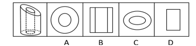 39、將一個(gè)空心圓柱體斜切,得到下圖所示物體。不可能是這一物體截面的是( )。