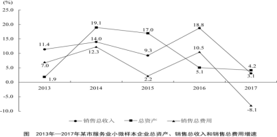 C.2013—2017年該市小微樣本企業(yè)銷售總收入和銷售總費(fèi)用的變動方向一致