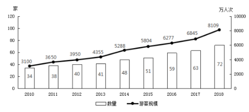 圖1 2010-2018年我國(guó)海洋主題公園年末數(shù)量及全年游客規(guī)模