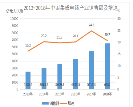 128.2013~2018年間中國集成電路產(chǎn)業(yè)銷售額增速最高的年份,當(dāng)年集成電路進口金額同比約增加:( )