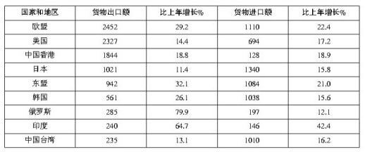 2007年我國對主要國家和地區(qū)貨物進出口額及其增長速度