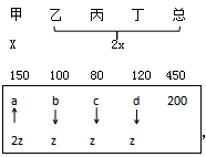 后期追加投資額為200萬元,假設(shè)四車間所得投資額分別為a、b、c、d萬元,且每個車間的追加投資額都小于等于其余任一車間追加投資額的2倍,以a為例:a≤2b,a≤2c,a≤2d。要想總投資額最大的車間和總投資額最小的車間相差最多,則需要讓最開始得到投資額最多的車間得到追加的投資額最多,最開始得到投資額最少的車間得到追加投資額最少即可,丙車間原本最少,假設(shè)它追加投資額為z(即四車間最少得到追加投資額為z),甲車間原本最多,其追加投資額最多為2z。