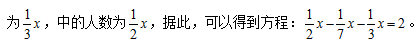 列出方程之后大家會發(fā)現(xiàn)出現(xiàn)多個分數(shù),求解過程中需要進行通分,相當于要多進行一步計算,那么為了避免復雜計算,不妨結合多個分數(shù)的分母,設總人數(shù)為42x(42為2、7、6的最小公倍數(shù)),那么得優(yōu)的人數(shù)為6x,得良的人數(shù)為14x,得中的人數(shù)為為21x,從而得到方程: