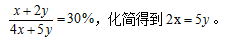 【答案】A【解析】本題已知音樂系男女人數(shù)比為1∶3,可以結合比例關系設音樂系男女人數(shù)分別為x和3x,同理,結合美術系男女生人數(shù)之比為2∶3,設美術系男女人數(shù)分別為2y和3y。由學院男生人數(shù)占總人數(shù)的30%可得等量關系