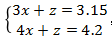 ,不難解出x=1.05、z=0,可得“x+y+z=1.05+0+0=1.05”,故本題選D。