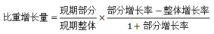 若部分增長率>整體增長率,則現(xiàn)期比重上升;若部分增長率<整體增長率,則現(xiàn)期比重下降。