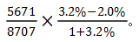接下來分析式子中較簡單的部分3.2%-2.0%=1.2個百分點,我們知道5671/8707計算結(jié)果小于1,那么與其相乘的結(jié)果小于1.2個百分點;其次分母上的1.032大于1,計算的結(jié)果會更小,然后選擇數(shù)值比1.2小的B選項即可。