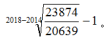【答案】C【解析】由題目可知,2014年全國工傷保險參保人數(shù)為20639萬人,2018年為23874萬人,則2014-2018年全國工傷保險參保人數(shù)的年均增速為