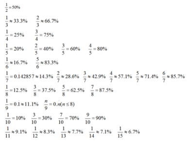 常見百分數(shù)與分數(shù)的轉(zhuǎn)化