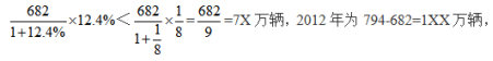 2013年為847-794=5X萬輛,2014年為920-847=7X萬輛,2015年為942-920=2X萬輛,2016年為1039-942=9X萬輛,2017年為1240-1039=2XX萬輛。比較可知,同比增量低于80萬輛的有2011年、2013-2015年,共4年,本題應(yīng)該選擇A選項。