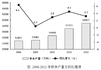 A.從2008~2012年,糧食產(chǎn)量增長率逐年提高