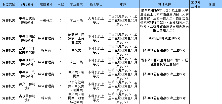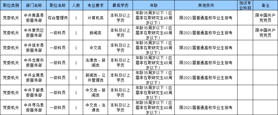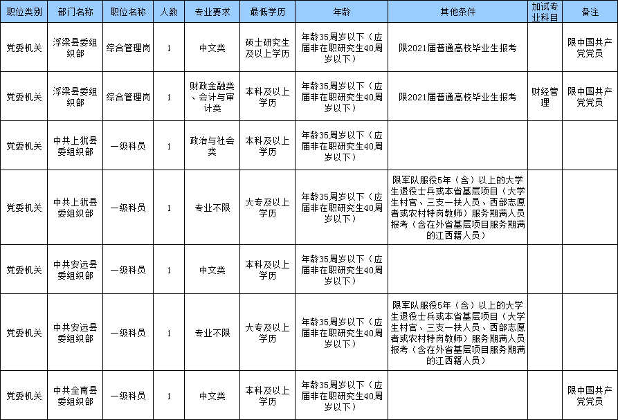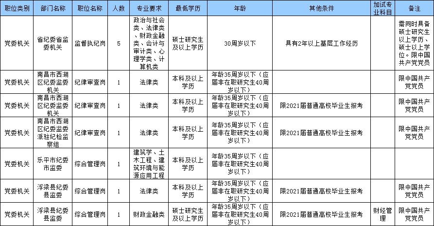 報(bào)考條件:參考2021年江西省考職位表,如下(部分職位展示)