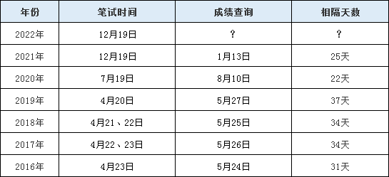 附歷年山東省考從筆試到成績查詢的時間分布情況