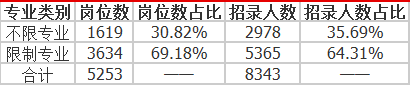 4、專業(yè):大部分崗位有專業(yè)要求,其中不限專業(yè)的崗位占比30.82%;