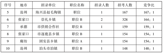 ?。?021年河北省考招錄競爭比最小的十大崗位)