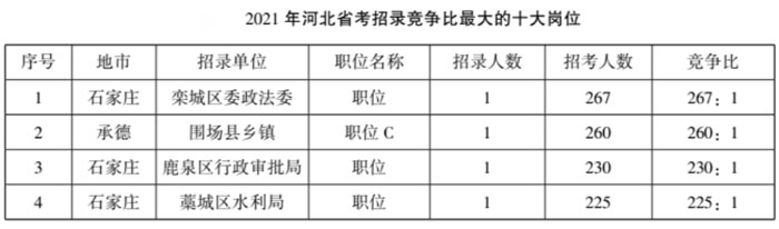 ?。?021年河北省考招錄競爭比最大的十大崗位)