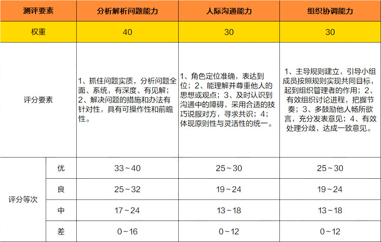 但近幾年常以無領導小組討論的面試形式,所以我們今天主要討論一下無領導小組面試的評分標準。無領導主要考察考生的各方面能力,和結構化面試完全不同,它不是激烈的辯論,而是意見的交流討論;不是用氣勢壓人,而是用氣度服人;不是獨占鰲頭,而是群策群力引導指引。在這個基礎上,我們必須進行準備,才能有的放矢。
