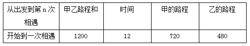 甲、乙兩人以均勻的速度分別從相距1200米的A、B兩地同時出發(fā),相向而行,到達對方出發(fā)點后立即返回、已知甲每分鐘走60米,乙每分鐘走40米。