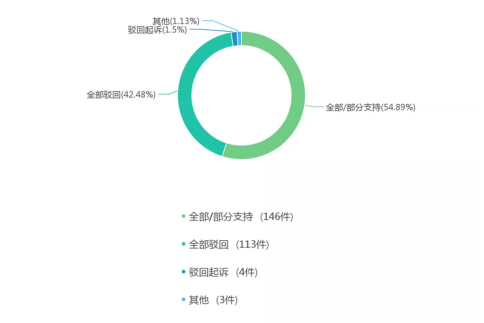 一審結(jié)果中,全部/部分支持的有146件,占比為54.89%;全部駁回的有113件,占比為42.48%;駁回起訴的有4件,占比為1.50%,超過一半案件的訴求得到法院的支持或部分支持,凸顯違反適當(dāng)性的問題頗為可觀,也顯示出法院近年來(lái)對(duì)投資者保護(hù)力度較大。