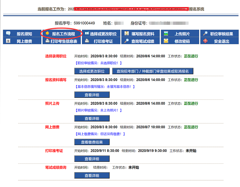 1、點(diǎn)擊報(bào)名工作流程會(huì)顯示如圖2-1頁面: