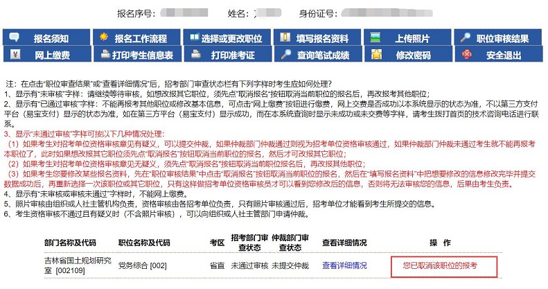 1、 取消報(bào)名:取消報(bào)名后可以重新選擇職位
