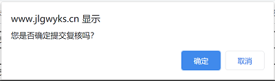 (1、資格審查結(jié)果列表(如圖5-2)中,點(diǎn)擊‘提交復(fù)核’有如下提示(如圖5-5),‘確定’后填寫提交復(fù)核的原因(如圖5-6),點(diǎn)擊‘提交’即完成提交復(fù)核。
