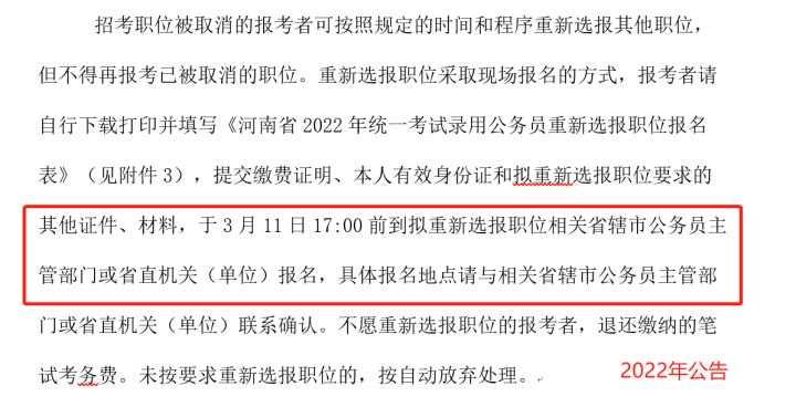 2022年河南招考職位被取消后,考生可以重新申報崗位,2022年重新申報崗位后,需要把材料提交到相關(guān)用人單位??忌邕M(jìn)行了重新選報一定要在規(guī)定時間內(nèi)完成提交申請。
