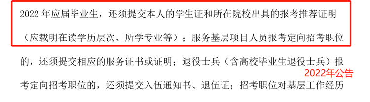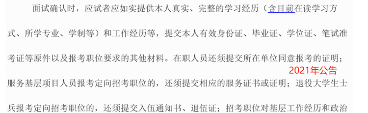 2022年河南相比去年,在面試后針對于2022應(yīng)屆生有了明確的變化,2022年應(yīng)屆生應(yīng)提供本人學(xué)生證和學(xué)校報考推薦證明。所以2022年應(yīng)屆生要尤為的注意了,把材料準(zhǔn)備齊全進(jìn)行面試,不要出現(xiàn)材料缺失問題。