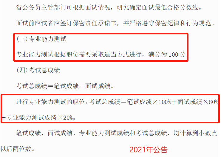 2022年的公告中未單獨(dú)提及專業(yè)能力測試的的分?jǐn)?shù)和對應(yīng)崗位的總成績核算方法,所以涉及專業(yè)能力測試的考生要參考2021年的分?jǐn)?shù)計算方式進(jìn)行備考。