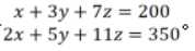 【例題3】現(xiàn)有甲、乙、丙三種商品,若購(gòu)買甲1件、乙3件、丙7件共需200元;若購(gòu)買甲2件、乙5件、丙11件共需350元。則購(gòu)買甲、乙、丙各1件共需多少元。( )