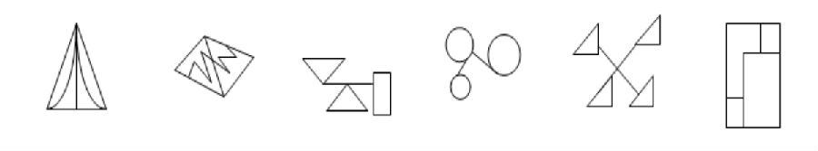 例題:把下面的六個圖形分為兩類,使每一類圖形都有各自的共同特征或規(guī)律,分類正確的一項是: