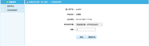 在此頁(yè)面可以完成對(duì)考生個(gè)人信息的修改。