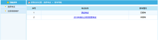 通過(guò)點(diǎn)擊系統(tǒng)導(dǎo)航菜單中“選擇考試”選項(xiàng)可以跳轉(zhuǎn)到選擇要報(bào)名的考試的頁(yè)面,如下圖所示: